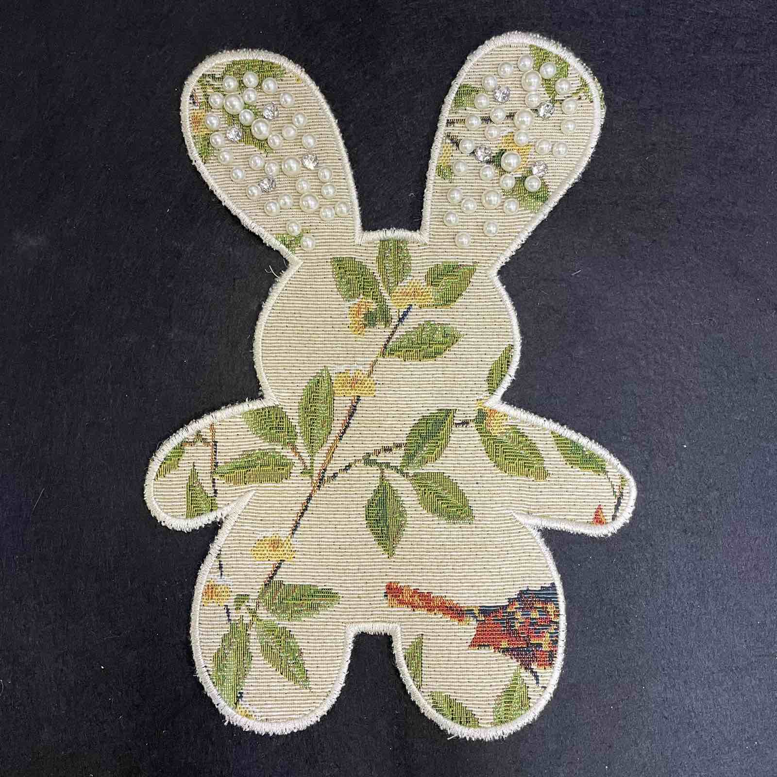 Аппликация тканевая Зайка, 26*19см, беж.,зел., жемч, шт.