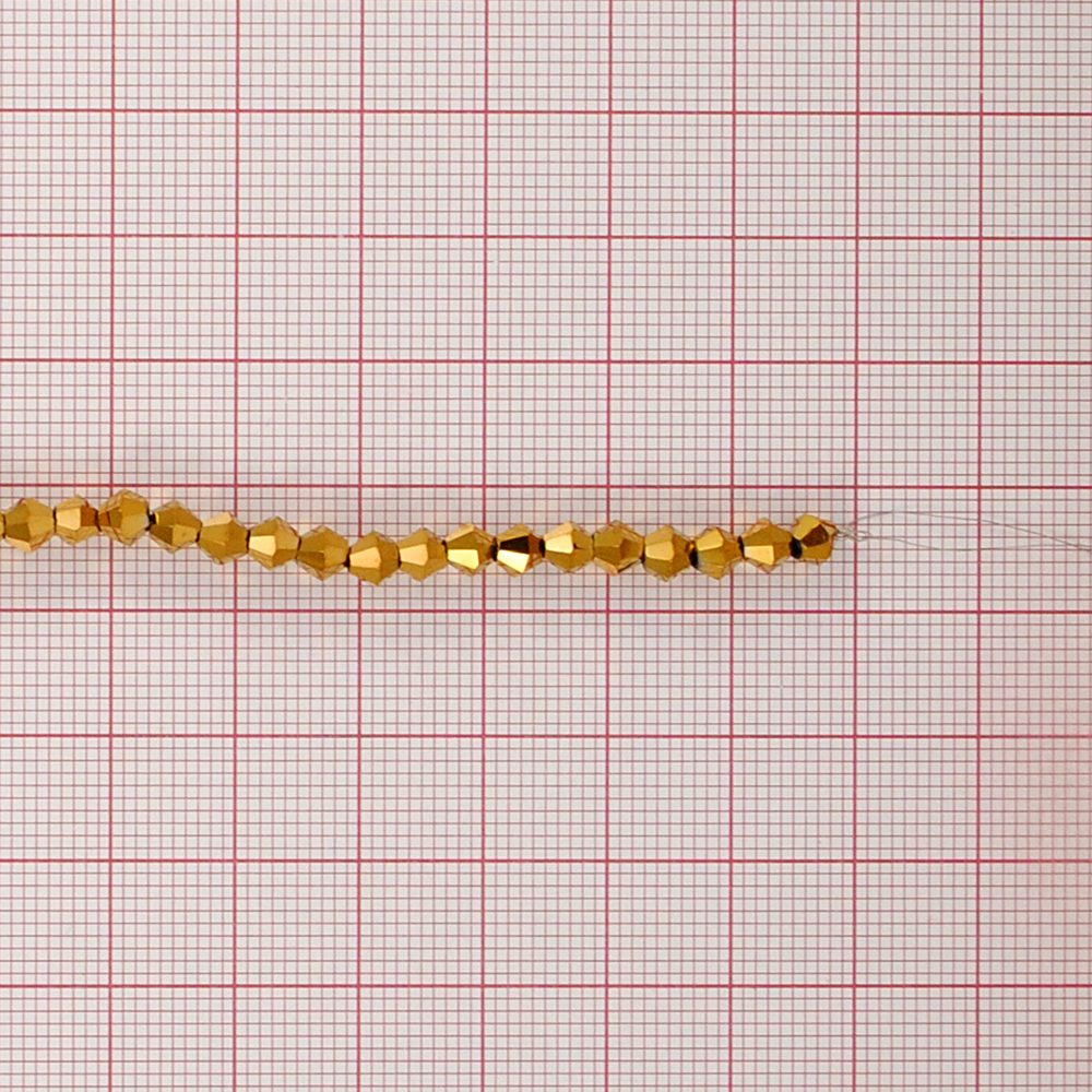 Стеклярус на нити, 4*4мм, темное золото, шт