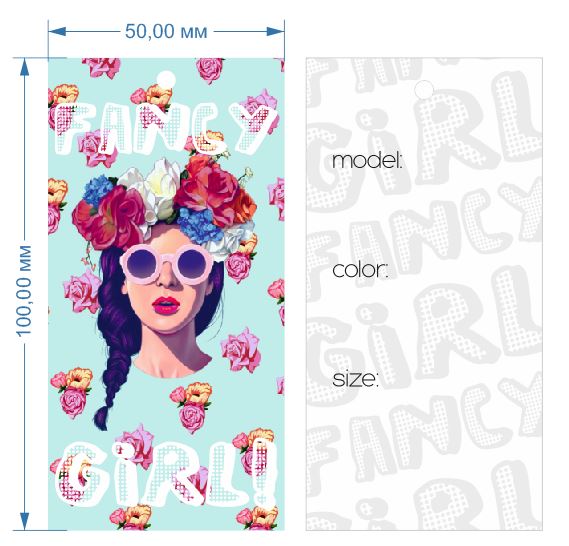 Этикетка бумажная Fancy girl, 50*100мм Девушка в венке, шт
