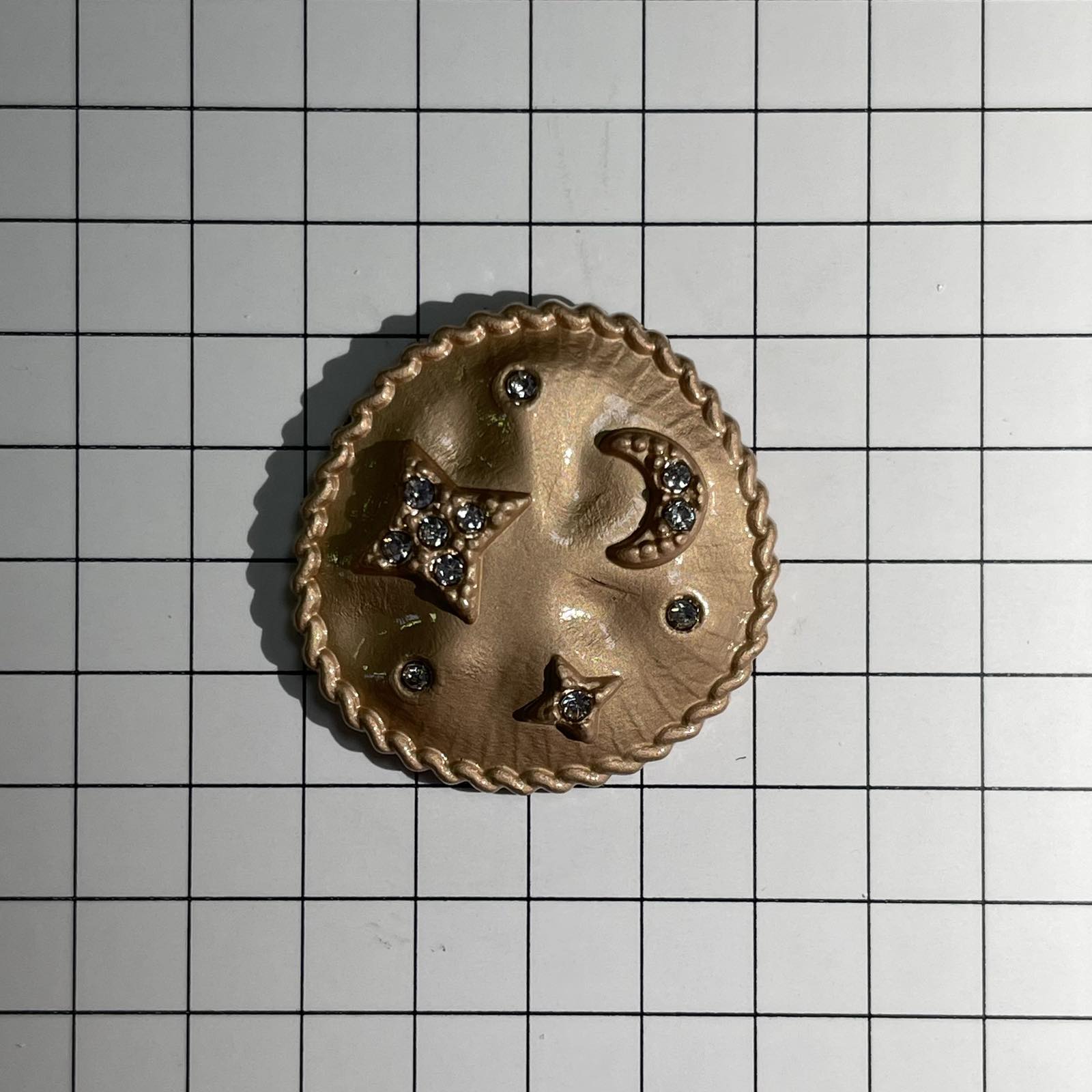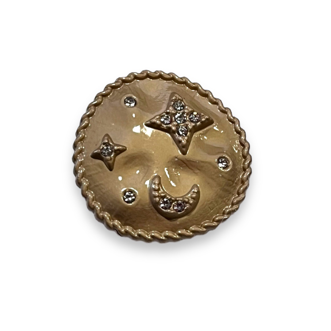 Пуговица металл круглая, Луна и звезды 22мм, зол., эмаль, стразы, шт.