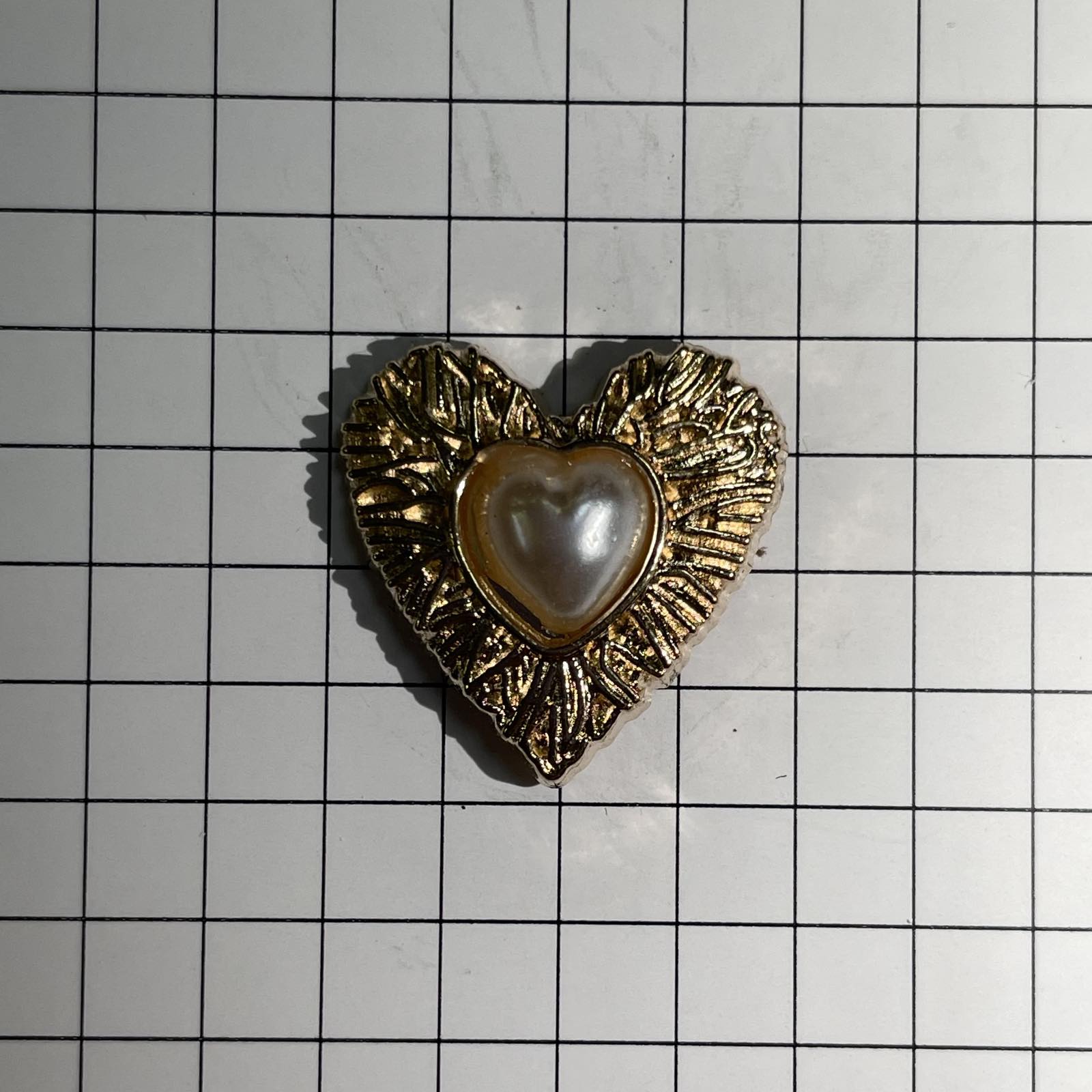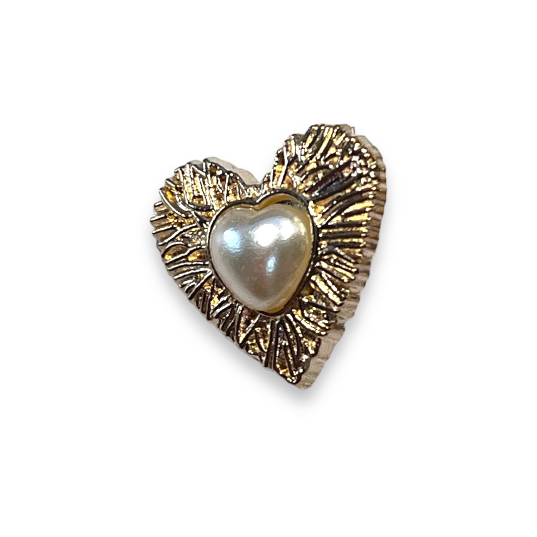 Пуговица металл Сердце с Жемчужиной 20мм, зол., жемч, шт.
